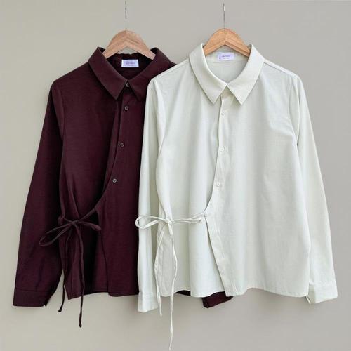 [엘케이트] 여자 블라우스 실키 허리 리본 긴팔 랩 블라우스 LCC001