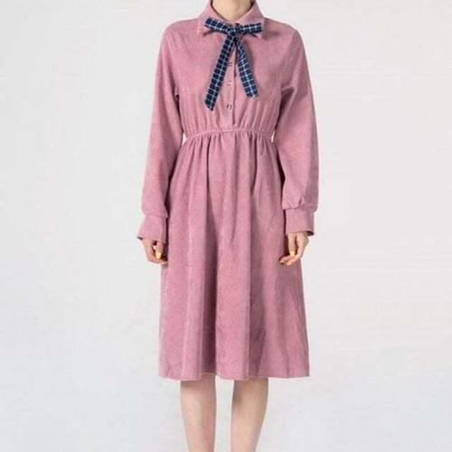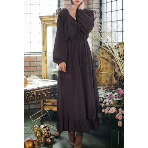 [셀럽하우스]롱 RBJM7941 긴팔 캐주얼 드레스 쉬폰 필수템 리본 프릴 여성