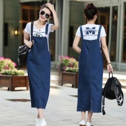 (제스트)린넨원피스 롱 청청셋업 리스트원피스 멜빵치마 데님
