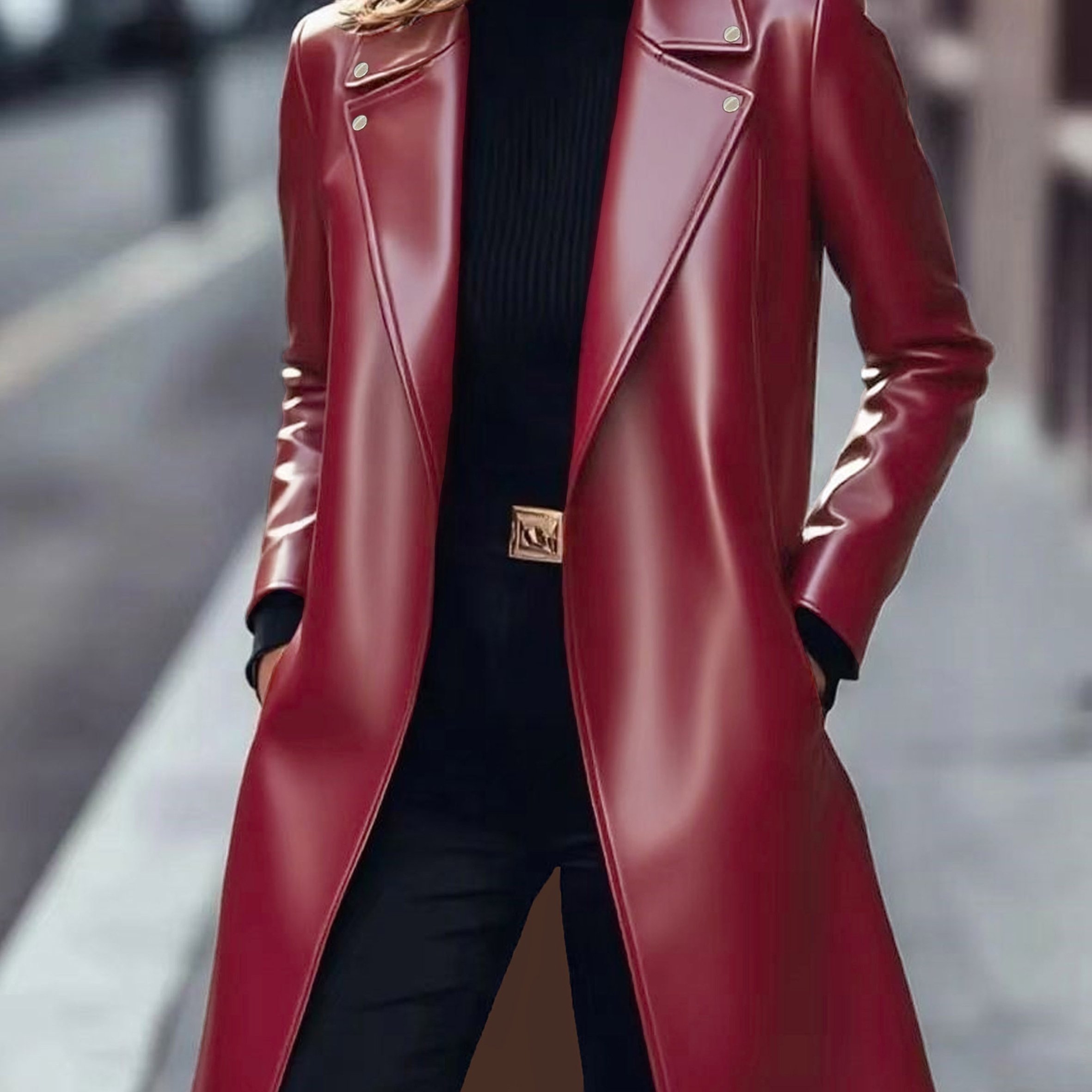 TEMU 플러스 사이즈 - 플러스 사이즈 - 플러스 사이즈 - 플러스 사이즈 여성 캐주얼 긴팔 트렌치 코트 - 미디 길이, 편안하고 넉넉한 핏, 단색, 라펠 칼라, 레귤러 슬리브, 벨트리스 디자인