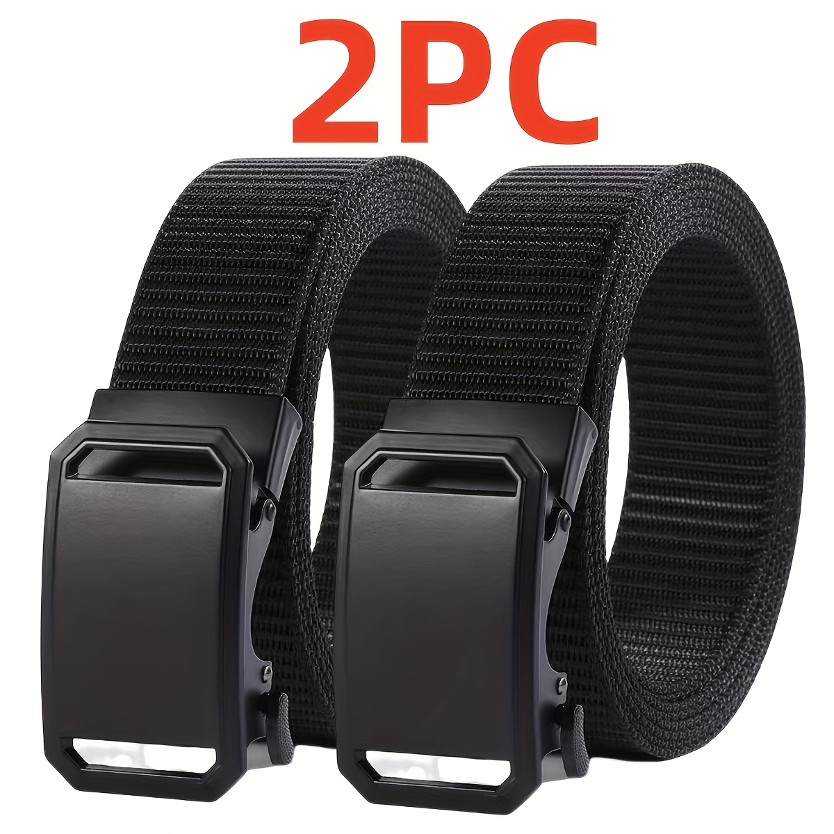TEMU 2개 남성용 캐주얼 나일론 벨트 - 자동 아이언 버클, 내구성 있는 직조감 디자인, 스타일, 블랙 & 올리브 그린, 벨트 액세서리