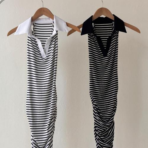 [옷자락] 여성 워터밤 단가라 민소매 카라 셔링 미니 원피스