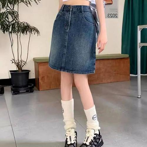 [XBK8L104_48]미니멀리스트 데님 스타일 캐주얼 미디스커트