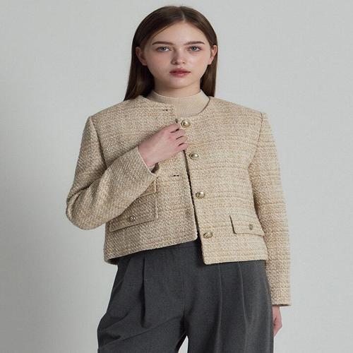 리스트 라운드넥 트위드 자켓 TWWJKP52100 IV