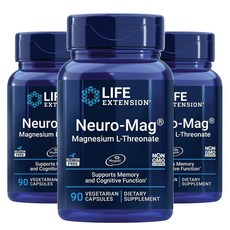 라이프익스텐션 뉴로-매그 마그네슘 L-트레오네이트 베지테리안 캡슐, 90정, 3개
