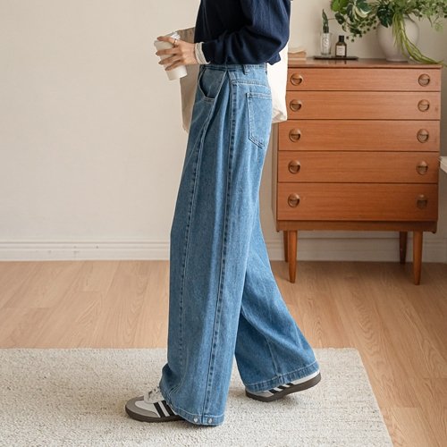 리오셀 사이드폴딩 핀턱 투웨이 와이드데님(숏기본롱)