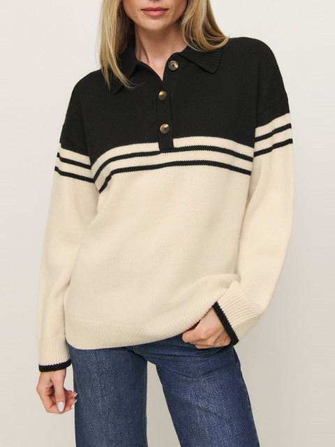 [리포메이션] 컬러 블록 폴로 스웨터 (Brooklyn Cashmere Polo Sweater)_블랙 RF14308062