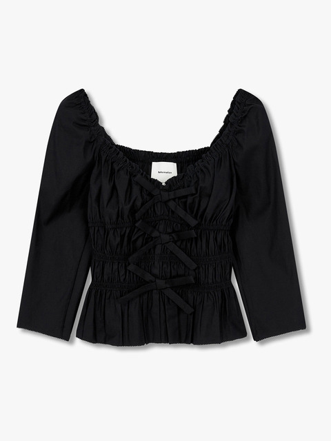 [리포메이션] 와이드넥 리본 스모크 탑 (Lauryn Top) (블랙) _블랙 RF15106029