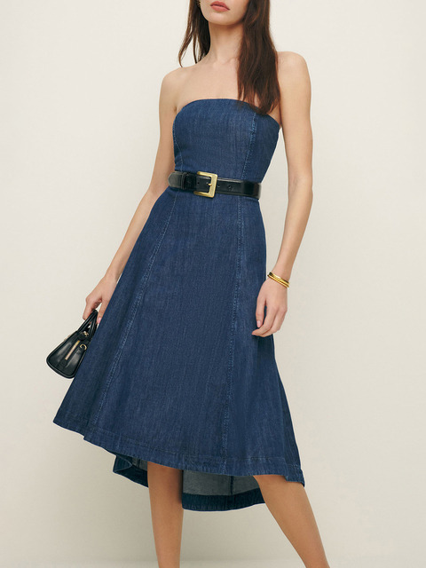 [리포메이션] 데님 플레어 드레스 (Tagliatelle Denim Midi Dress)_블루 RF15111023