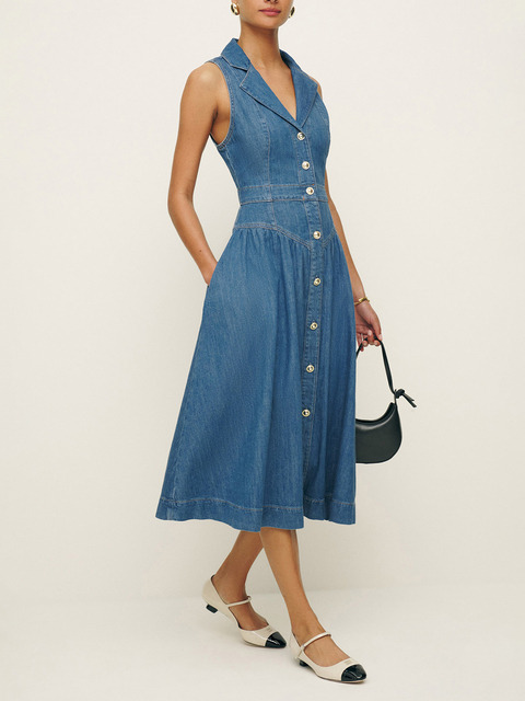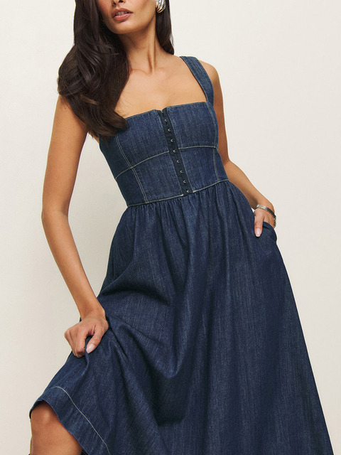 [리포메이션] 데님 미디 A라인 드레스 (Zoie Denim Midi Dress) _블루 RF15111034