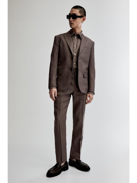 [에이치엔엠] 슬림핏 리넨 수트 팬츠 다크 베이지 1219297006