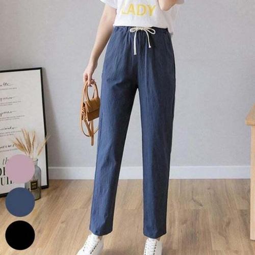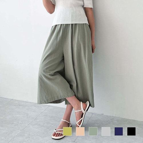 [셀럽하우스]린넨 SKZQ2514 도화 캐주얼 와이드 레그 팬츠