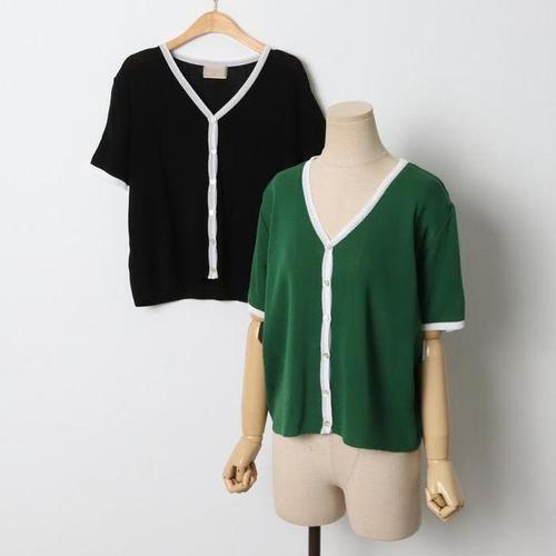 [셀러허브_여성트랜드패션]빅사이즈 507 배색린넨와이넥가디건 DRMI923