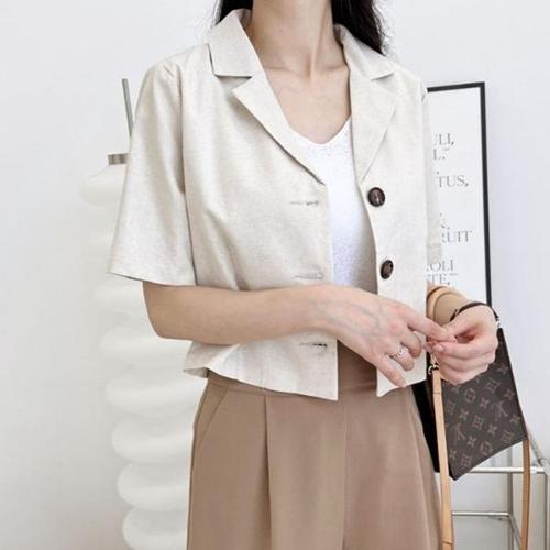 [엄지척]여자 반팔 린넨 셔츠 자켓 직장인 30대 회사원_19660122_667501