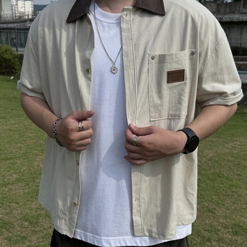[피팅남]남자 테스 오버핏 여름 린넨 워크 반팔 셔츠 남방