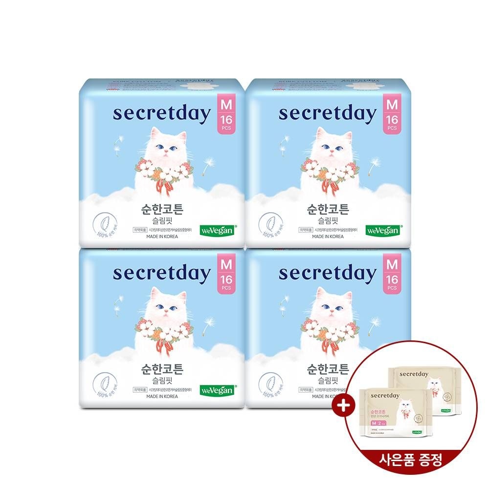 [100% 순면커버 오가닉] 시크릿데이 생리대 순한코튼 린넨오가닉 중형 16PX5팩 외 오버/롱라이너/입는생리대