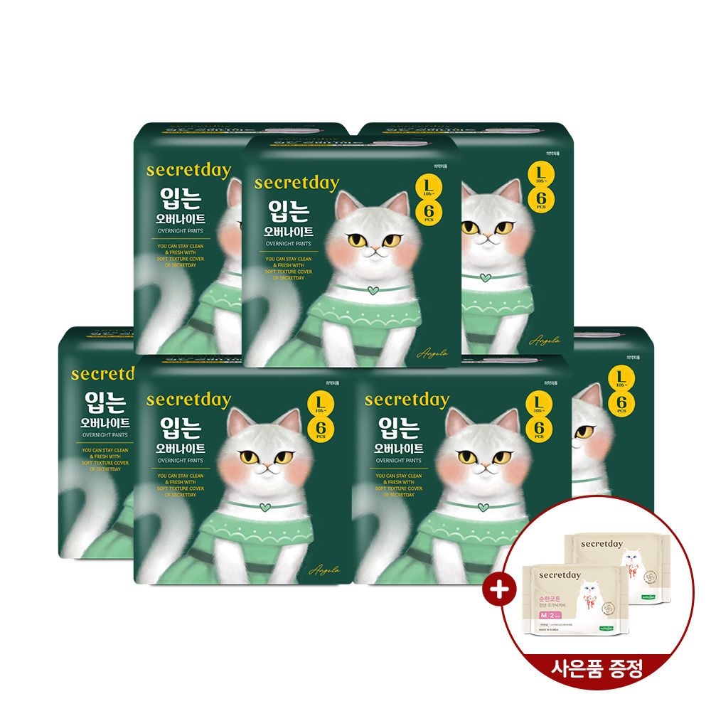 [시크릿데이] 순한코튼 린넨오가닉 입는오버나이트 중대형 6PX5팩