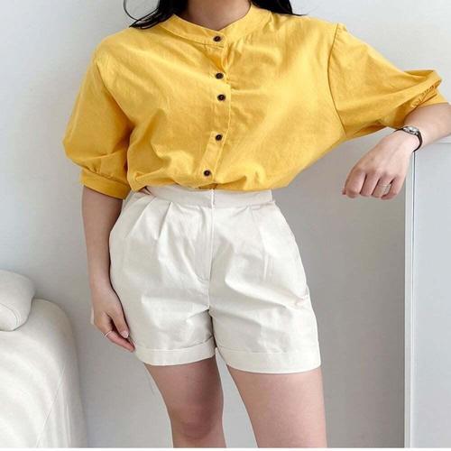 [셀럽하우스]린넨셔츠 QGNP4824 벌룬소매 루즈핏 여름셔츠 반팔블라우스