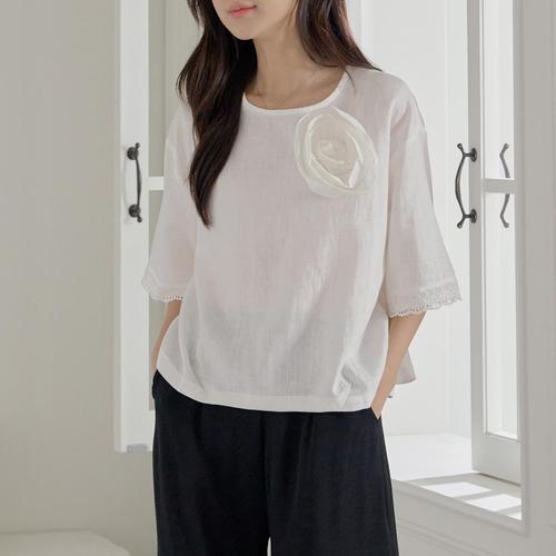 [로즈미] [55~77] 엘프 린넨 로즈 레이스 블라우스