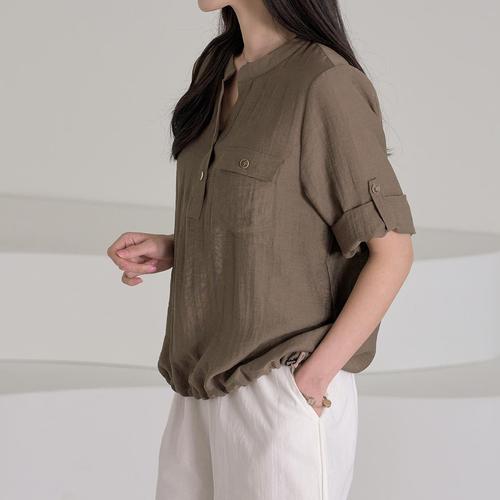 [엄지척]F007300_라운드 단추포인트 7부 린넨블라우스 티셔츠_19660529_667501