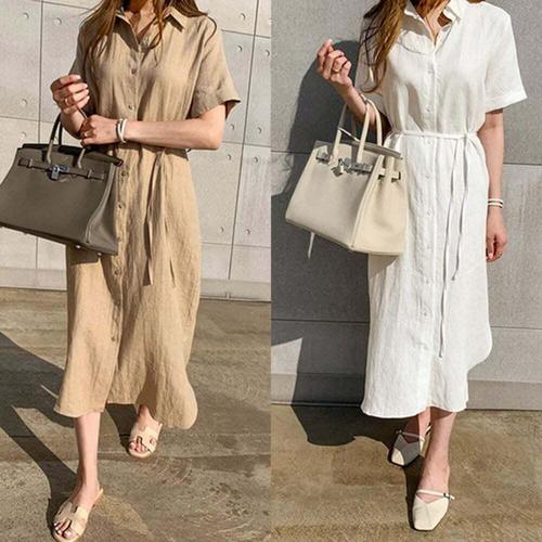 [엄지척]반팔 롱원피스 린넨 셔츠 원피스 끈포함 루즈핏_19861458_667501