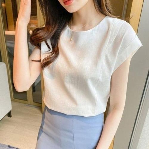 Unique 1+1 여성 여름 캐주얼 린넨 나시 티셔츠 얇은 고급 쿨 원단 민소매 나시티 조끼 빅사이즈
