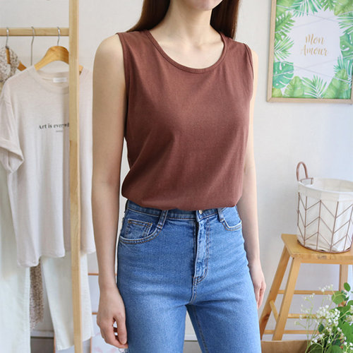 레이츄 / 런닝 무지 여름 린넨 나시 민소매 티셔츠 (5컬러)