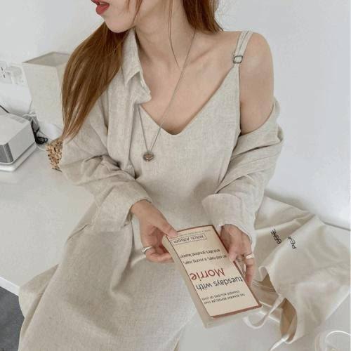 린넨 휴양지 롱 셔츠 하객 여름 퍼프 뷔스티에 WFKNXJV