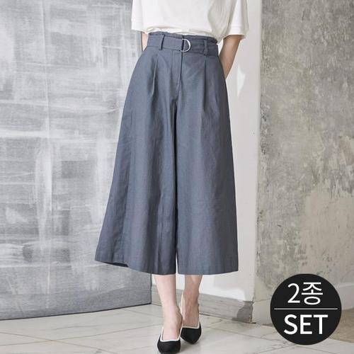 [로코엘라]쉬엔 와이드핏 여성 린넨 큐롯 팬츠 2종세트
