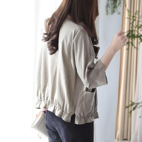 [옷자락] 여성 여름 린넨 노카라 반집업 재킷