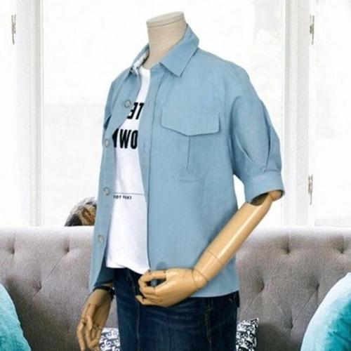 [엄지척]F007300_라운드 단추포인트 7부 린넨블라우스 티셔츠_19660529_667501