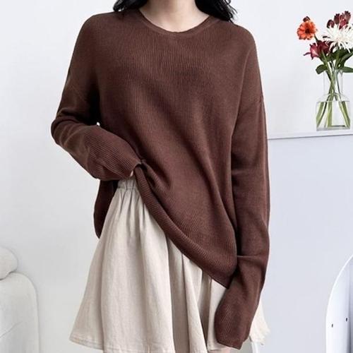 [엄지척]여자 루즈핏 베이직 린넨 라운드넥 긴팔 니트 티셔츠_19679842_667501