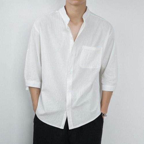데일리 캐주얼 남성 여름 차이나 카라 린넨 7부 셔츠
