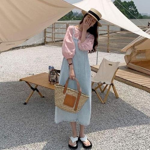 [엄지척]심플한 데님 여름 해변 휴가 편한 여성 멜빵원피스_19913163_667501