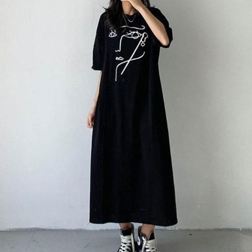[엄지척]여자 여름 편한 데일리 반팔 롱 원피스 레터링 포인트_19913089_667501