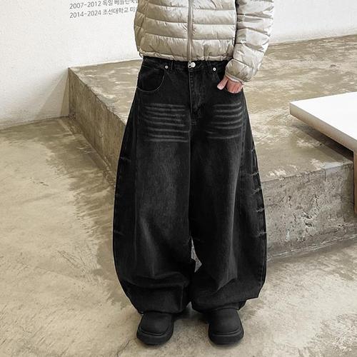 [히코튼]사이드 링클 워싱 비조 벌룬 데님