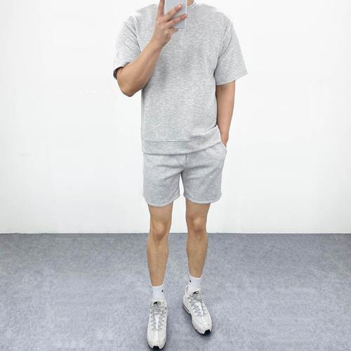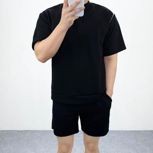 [엠클로]남자 구김방지 링클프리 분또 스판 라인 반팔티셔츠 밴딩 트레이닝 숏 반바지 2종세트