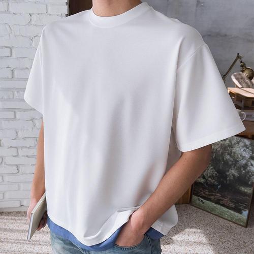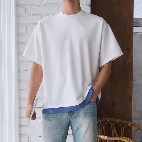 [엠클로]남자 구김방지 링클프리 오버핏 레이어드 옆트임 스판 라운드 반팔티셔츠 남여공용 2컬러