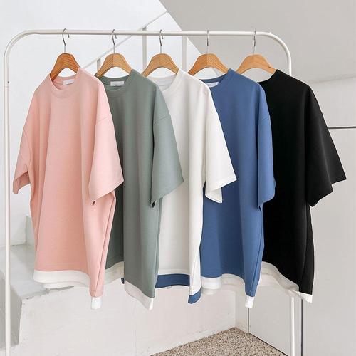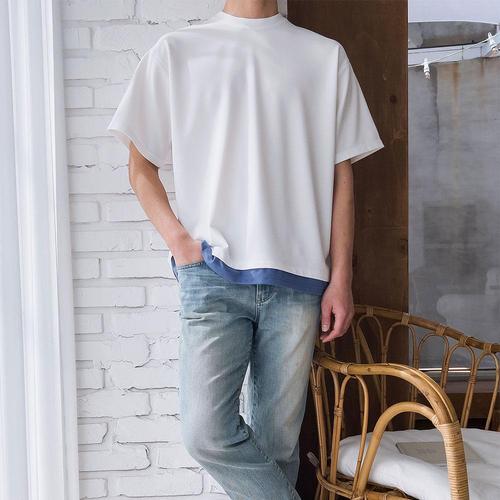 남여공용 링클프리 투톤 레이어드 반팔티 5C-TSH-Q015-소라