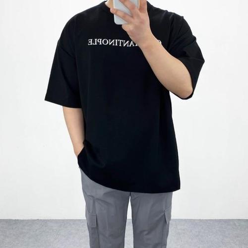 [엠클로]남자 박스오버핏 구김방지 링클프리 분또 노플 레터링 반팔티셔츠 3컬러
