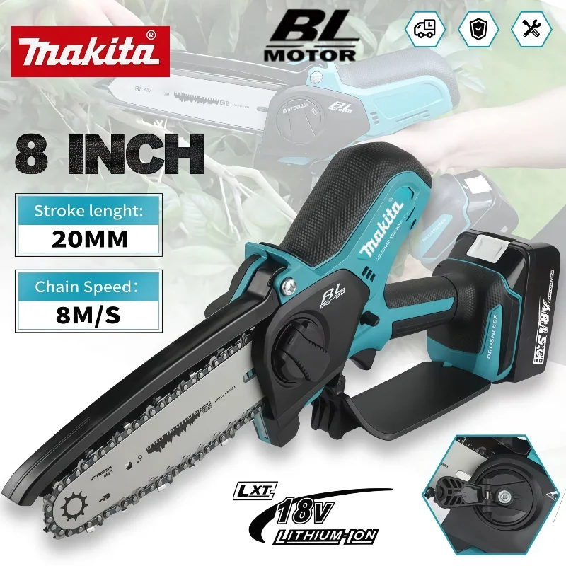 마키타 8인치 전기톱 휴대용 목재 벌목 체인톱 정원 가지치기 목재 전동 공구