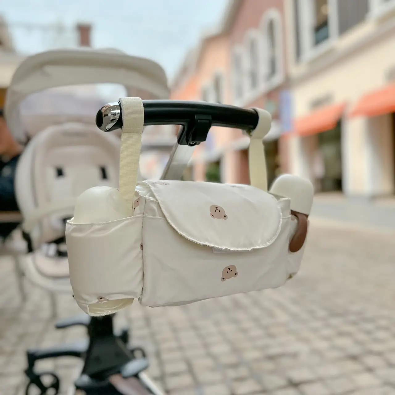 패셔너블한 유모차 수납 가방, 귀여운 테디 베어 머리 자수 유모차 가방, 유모차 걸이형 수납 가방