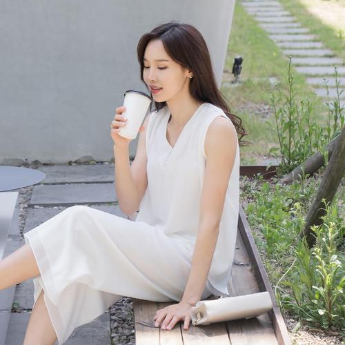 [디얼마미][디얼마미] 셔링 브이넥 나시 원피스 /마담 미시 중년 여성 빅사이즈 40대 50대