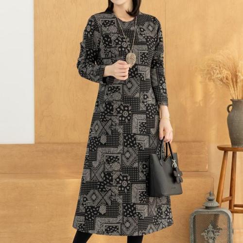 엄마옷 기모 브로치 원피스 OP516365 중년여성의류/60대/70대/마담/빅사이즈/할머니옷