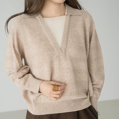 엄마옷 마담4060 모던베이직 소프트배색카라줄지니트-QKN2511013-
