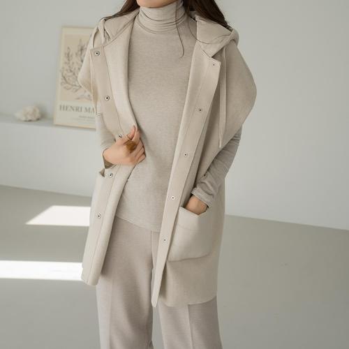엄마옷 마담4060 모던베이직 듀얼니트후드케이프조끼-QVE2511017-