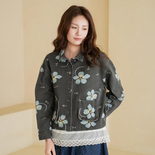 엄마옷 마담4060 [내추럴포엠]블루꽃자켓 -QJK2603008-