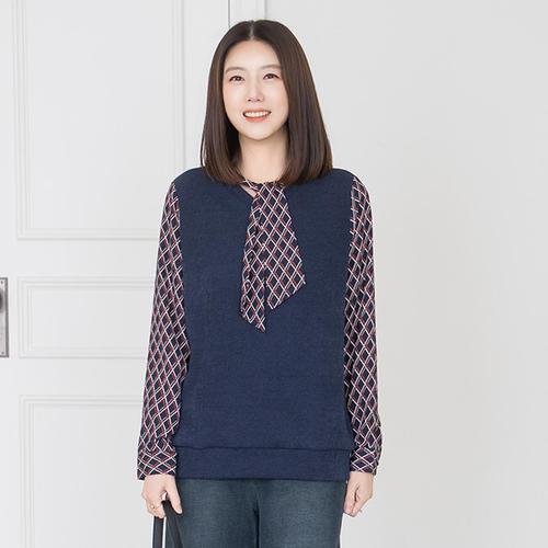 엄마옷 마담4060 다이아배색타이블라우스-QBL2601001-