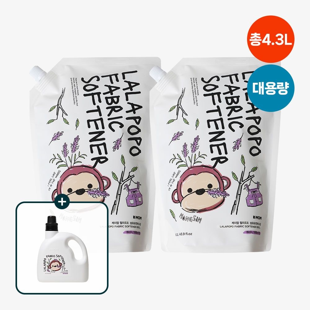 케이맘 랄라포포 섬유유연제리필 1.3L X 2팩 (자작나무) / 섬유유연제 1.7L 증정