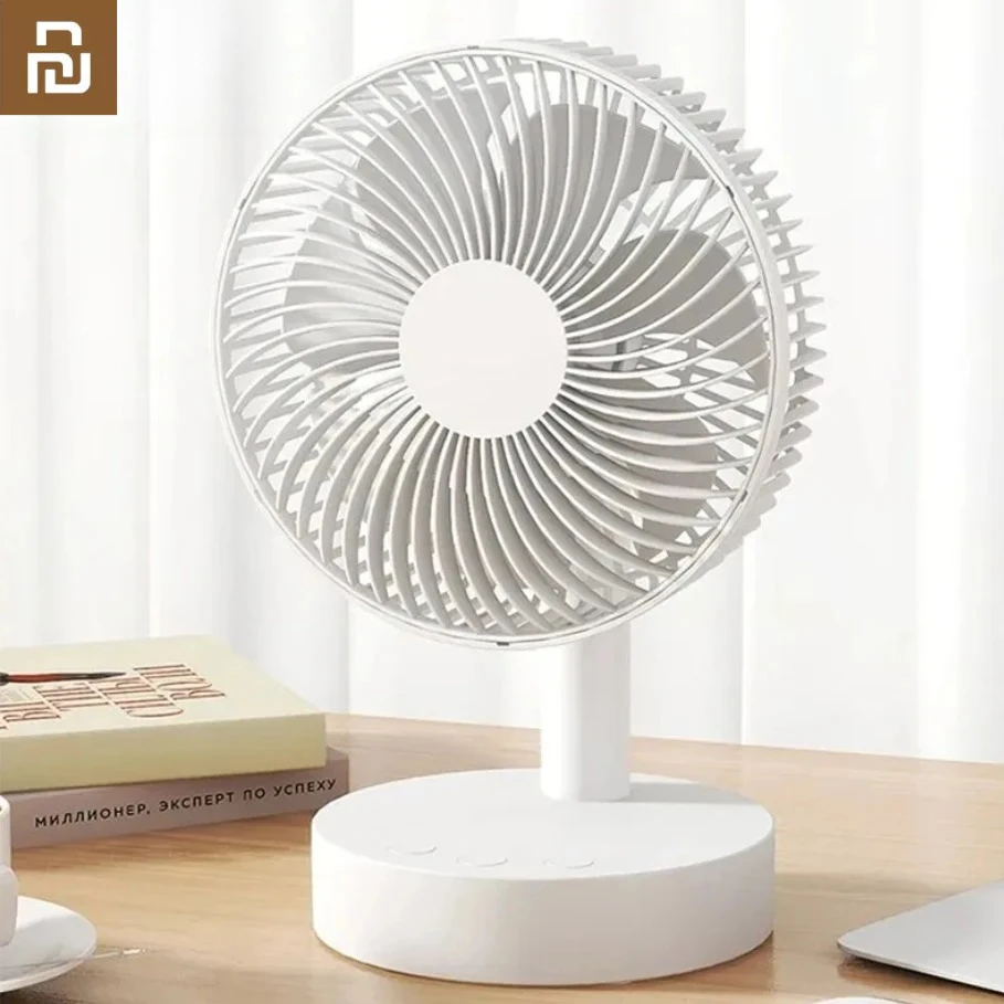 유핀 팬 소형 화이트 데스크탑 타이머 무소음 4단계 조절 가능 휴대용 팬 충전식 분리형 책상용 팬